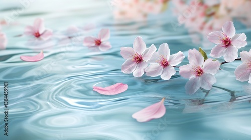 Delicate Cherry Blossoms on Rippled Water