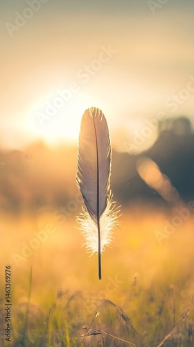 Delicate Feather Against Soft Sunset Glow in Nature Field