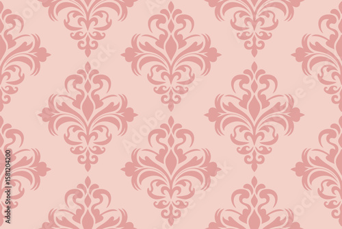 Delicate floral damask pattern in a soft pink hue for elegant designs.