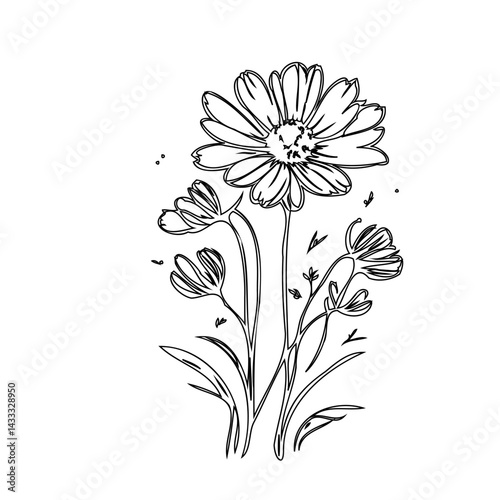 Delicate floral illustration, a monochrome bouquet with outlines, minimalist creation