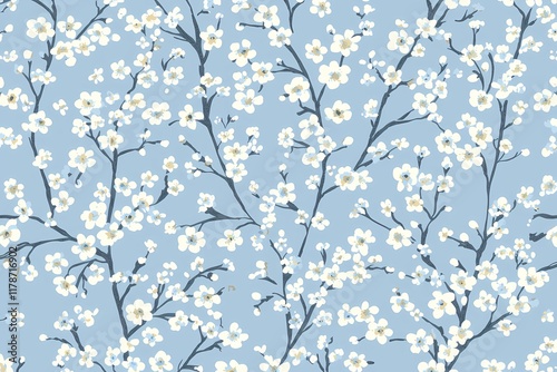 Delicate Floral Pattern Design with Light Blue Background