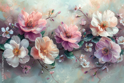delicate floral watercolor composition, wallpaper,. Generative AI