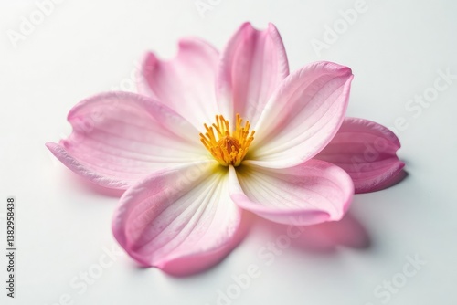 Delicate flower petals unfolding on a pristine white surface, delicate, blossom