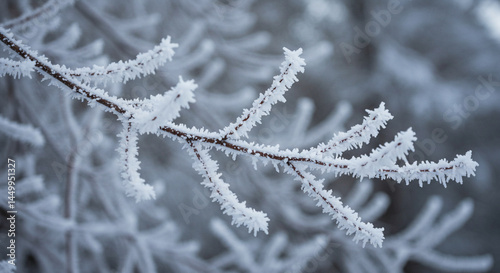 Delicate Frostwork: Intricate Ice Crystals Adorning Winter Branches