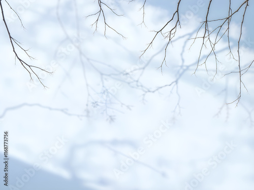 Delicate frosty tree branches on a soft blue background, ideal for seasonal designs or winter-themed concepts. Generative AI