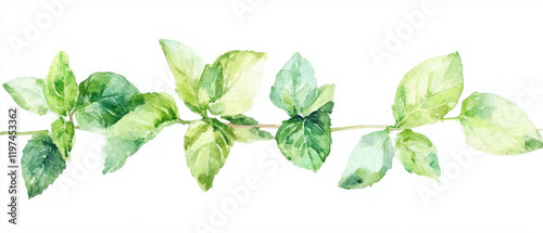 Delicate green mint watercolor painting showcasing vibrant foliage and artistic detail