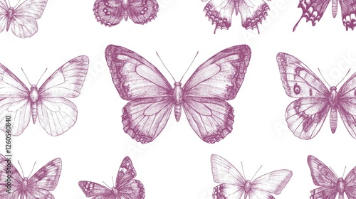 Delicate hand-drawn butterfly illustrations in varying shades of pink, evenly distributed in a seamless background.