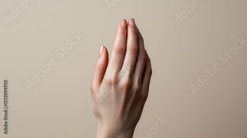 Delicate hands with soft lines on a pale beige backdrop showing pure simplicity