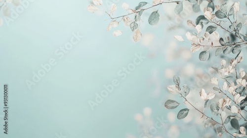 Delicate Leafy Patterns Against a Soft Aqua Blue Background in Serenity