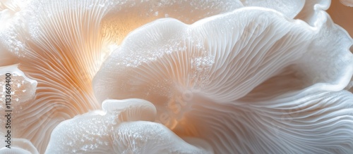 Delicate Oyster Mushroom Underside Texture Close Up