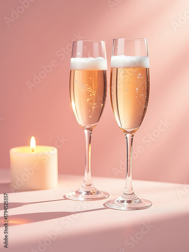 delicate pair champagne flutes rests soft background surrounded wispy white foam dances gentle light