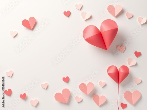 Delicate paper hearts in 3D line against pink and blue gradient backdrop, design, background, heart shapes