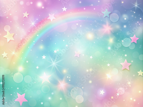 Delicate pastel rainbow hues swirl around twinkling stars and hearts, creating a soft, whimsical background perfect for feminine and youthful designs and projects.