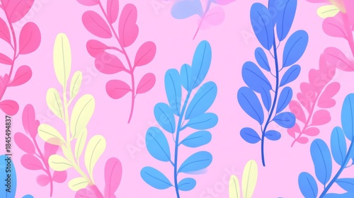 Delicate Pastel Springtime Foliage Illustration with Colorful Leaves and Seamless Botanical Design