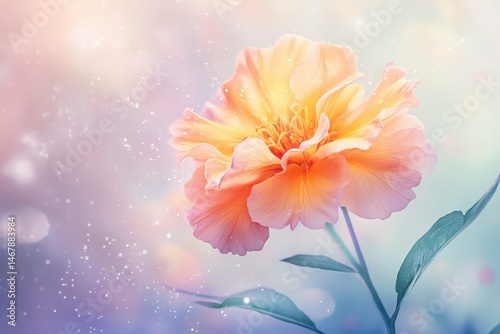 Delicate, peach-colored flower in a soft, dreamy setting.