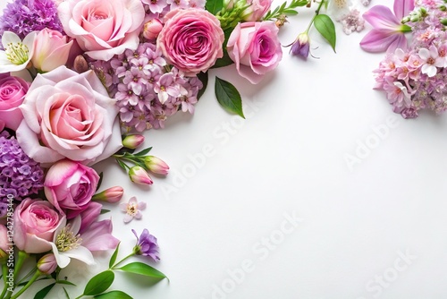 Delicate Pink Alstroemerias & Lilac Rose Summer Floral Flat Lay Mockup