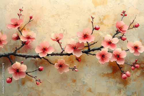 Delicate Pink Blossom Branch Against Textured Background