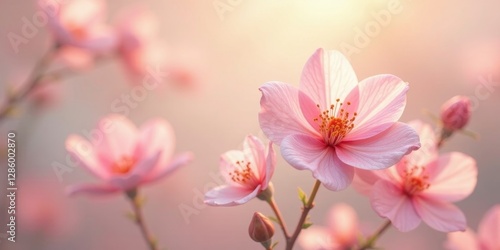 Delicate Pink Blossoms Illuminated by Golden Sunlight, a Serene and Peaceful Springtime Scene