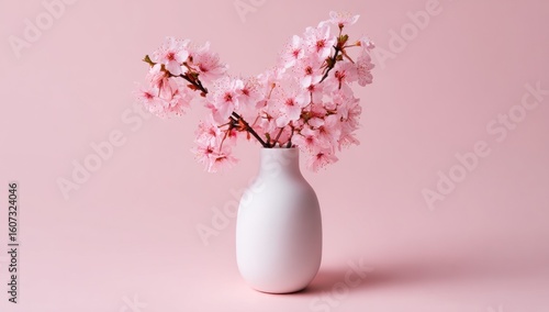 Delicate pink blossoms in a simple white vase.