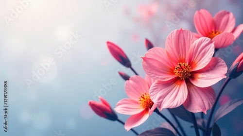 Delicate Pink Blossoms in Soft Light, a Serene Floral Image Featuring Vibrant Petals and Gentle Buds