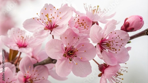 Delicate Pink Blossoms Unfurl on a Branch, Their Soft Petals Reaching Out to the Light