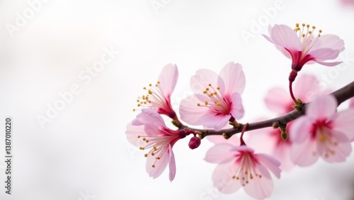 Delicate Pink Cherry Blossoms, Close-up View
