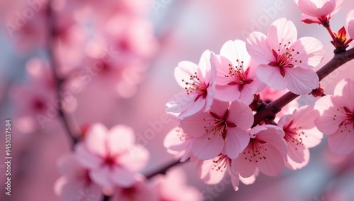 Delicate pink cherry blossoms, full bloom, intricate branches , background, petals, design
