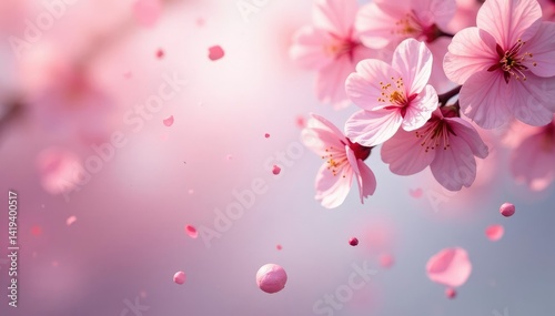 Delicate pink cherry blossoms, scattered petals, soft background, pink, subtle, illustration