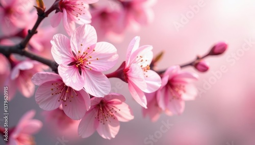 Delicate pink cherry blossoms, soft petals, gentle spring breeze , pink, botanical, soft
