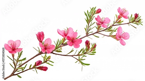 Delicate pink flowers on a slender branch, showcasing vibrant colors and intricate details.