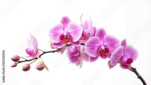 Delicate Pink Orchid Flowers Blooming on a Branch Against a Soft White Background in Nature