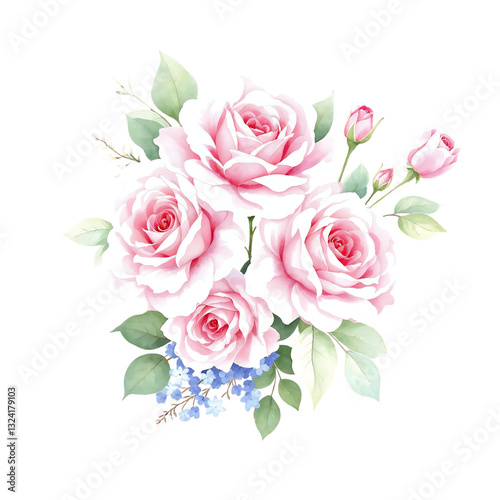 Delicate Pink Rose Bouquet Watercolor Illustration