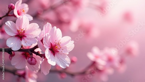 Delicate pink sakura blossoms, full bloom, scattered pattern , romantic, springtime