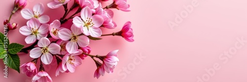 Delicate pink spring blossoms adorn a soft pastel pink backdrop, leaving ample room for your message, bloom, pink flowers