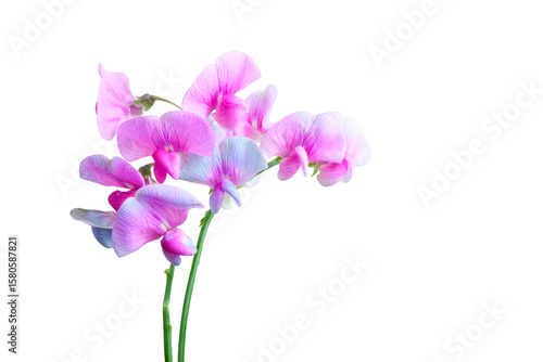 Delicate pink sweet pea (Lathyrus latifolius) flowers with green stems isolated on a transparent background. Ideal for botanical designs and floral compositions.