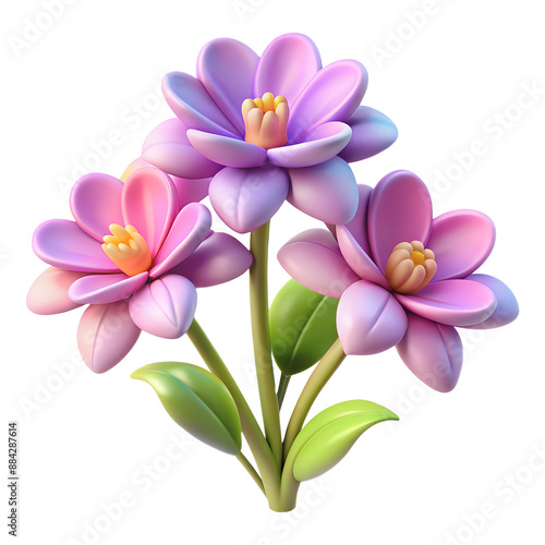 Delicate purple flowers on a stem in 3D rendering style on a white background