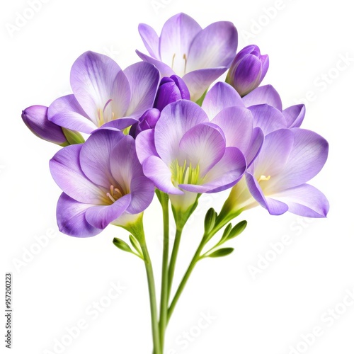 Delicate Purple Freesia Bouquet - Isolated White Background, Floral, Botanical, Spring ,flower, white background, purple