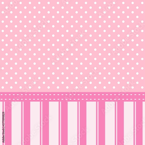 Delicate shades in pink pastel pastels. Stripes and circles on a light pink background. Background for children's design, pattern for fabric, wallpaper. Baby birthday card. Place for text