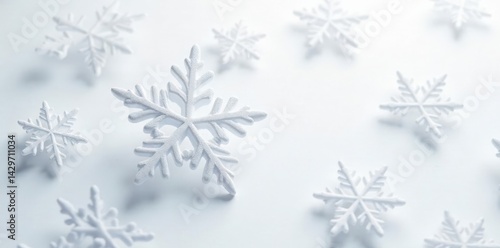Delicate snowflake pattern on white background, icy border, frost, frosty texture