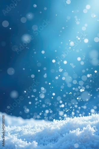 Delicate snowflakes dance in air amidst a blue winter sky, frosty, delicate