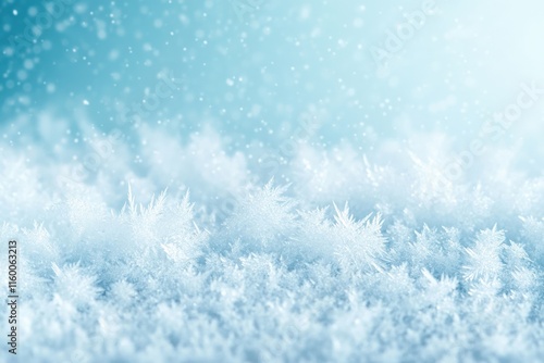 Delicate Snowflakes Resting on a Soft Blue Surface with a Gentle Blur Creating a Dreamy Winter Wonderland Atmosphere and Evoking Serenity and Calmness