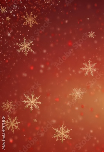 Delicate snowflakes scattered on a red-to-gold gradient background , holiday season, texture, holiday