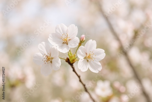 Delicate soft-focus cherry blossoms against a natural backdrop