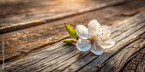 Delicate Spring Blossom Resting on Rustic Weathered Wood