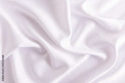 Delicate texture of white satin fabric with soft waves. Elegant white wedding background. layout for design.