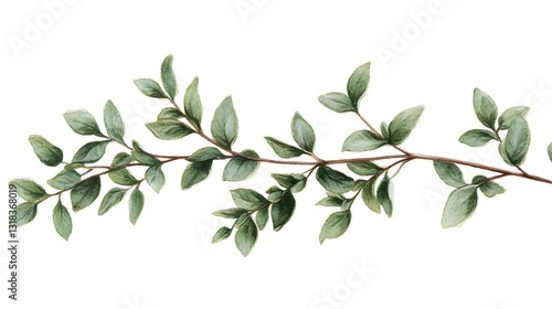 Delicate Thyme Sprig with Small Green Leaves on White Background
