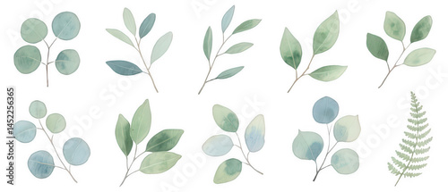 Delicate Watercolor Green Leaves & Branches Illustrations