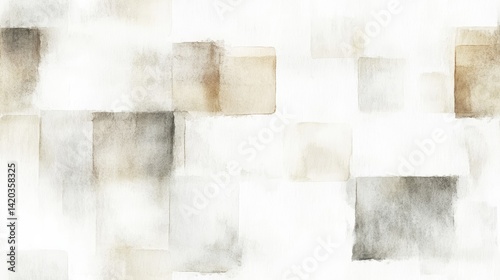 Delicate watercolor pattern on pristine paper with subtle beige square tile arrangement