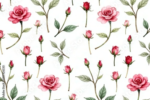 Delicate watercolor rose buds & leaves, repeating pattern, elegant, graphic