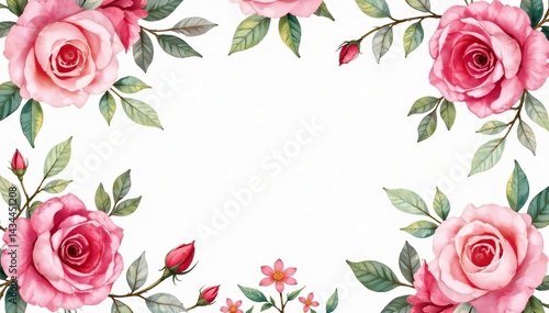 Delicate watercolor roses & leaves, repeating pattern, garden, floral